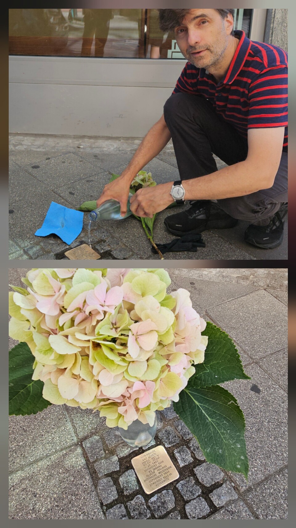 Bei der jährlichen Putzaktion der Stolpersteine reinigte Prof. Alpers den Gedenkstein für Professor Otto Selz in N2, 4, dessen Patenschaft die Uni Mannheim übernommen hatte.